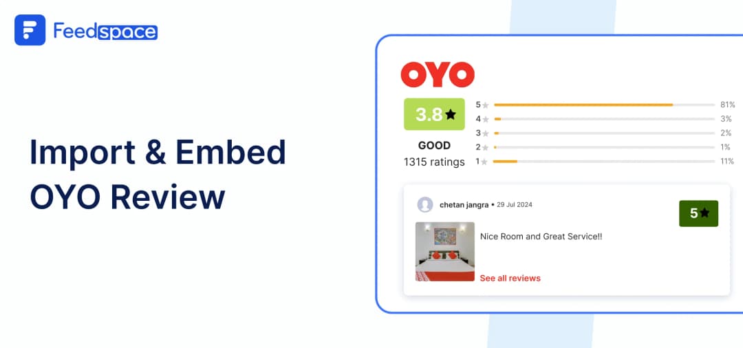 Adding OYO reviews to your site with Feedspace is easy and engaging and boosts your credibility. Not only do reviews create a sense of trust, but they also bring a unique and personal touch to your website. Try creating your Wall of Love today and let customer love be your website’s best-selling feature!