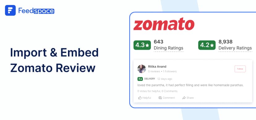 Feedspace is a tool that helps you bring all your reviews, feedback, and testimonials together in one place. With Feedspace, you can import Zomato reviews, organize them, and make them look amazing on your site with custom options to match your brand.