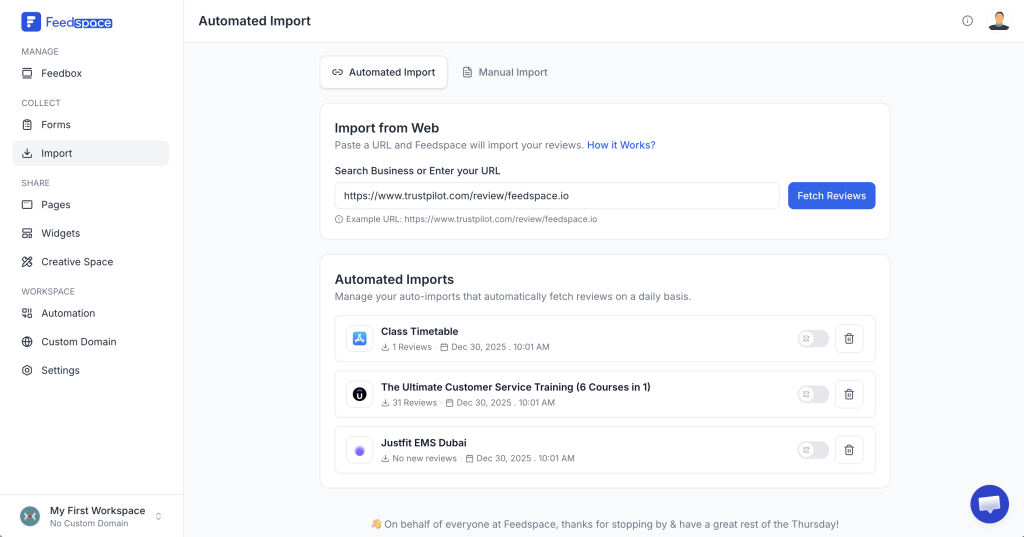 How to Bulk Import Reviews in Feedspace